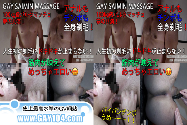 デカマラバルクマッチョ熊雄が全身剃毛プレイ初体験!!しかも今回はあの100kg級バルクマッチョ賢太郎との夢の共演!賢太郎にチンポの周りはもちろん、胸毛やアナルの毛まで全身をどんどん剃られ途惑いを隠せない熊雄。賢太郎もツルツルになっていく熊雄に大興奮w フェラや手コキでパイパンチンポをしつように責めていく。そんな熊雄も初めての経験にいつも以上に気持ちよさを感じ・・・ いつもなら恥ずかしいプレイもさいみん状態でなら大胆にもっと気持ちいいことが可能に!!